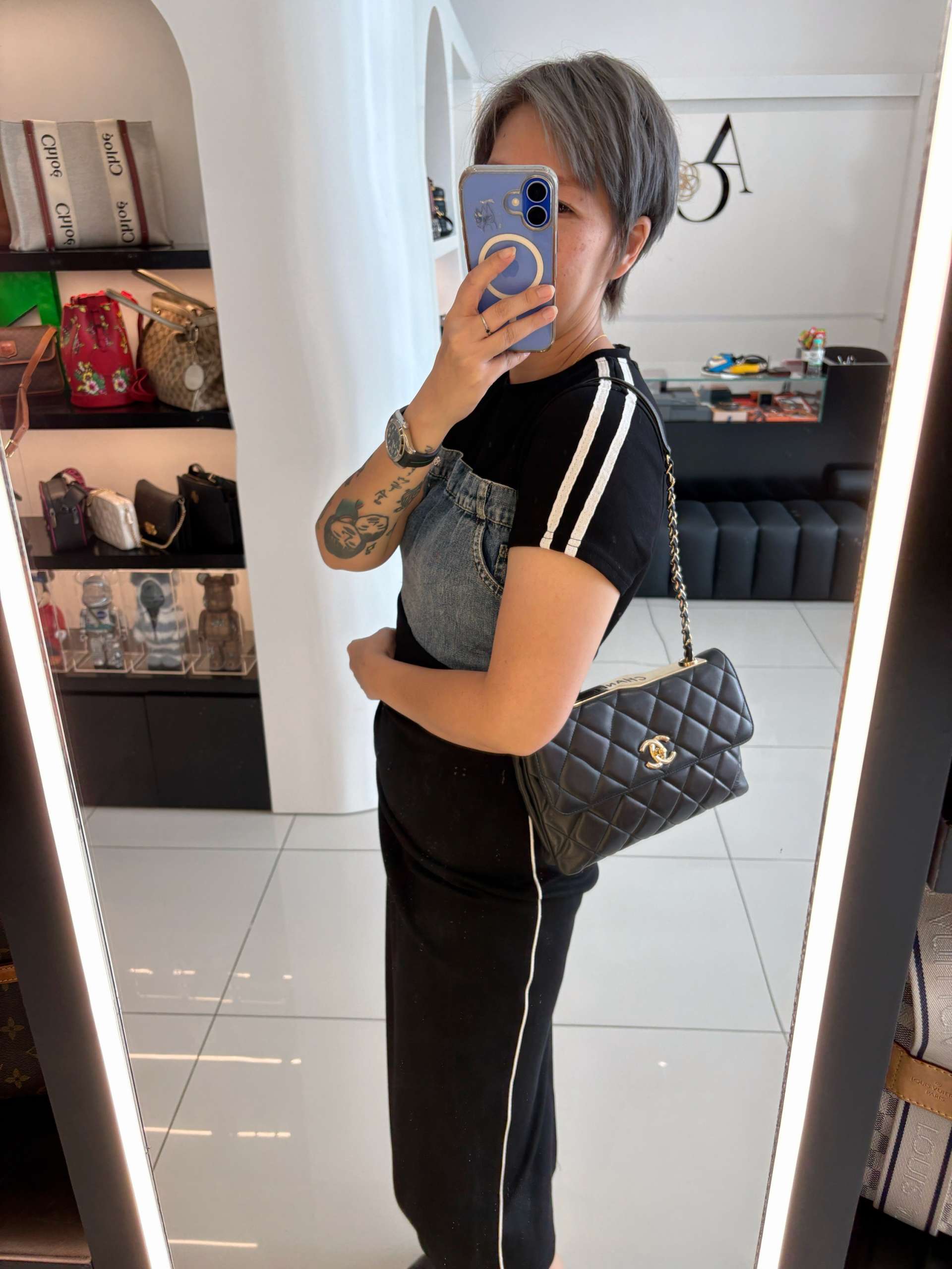 · Lambskin with gold hardware ~ A shoulder bag design, detachable strap allows use as a clutch ~ Offers decent storage space ~ Includes box, dust bag, card and tag