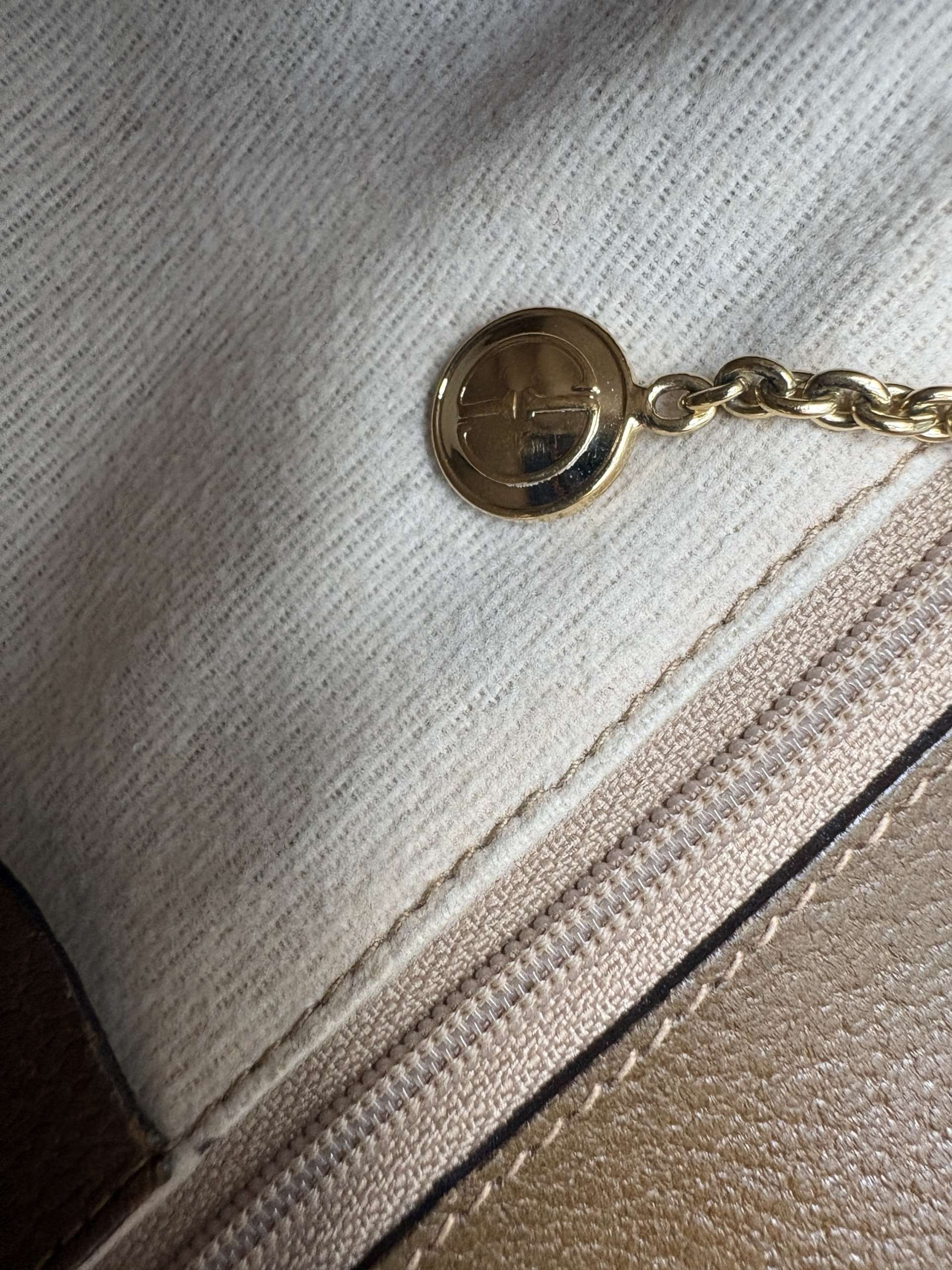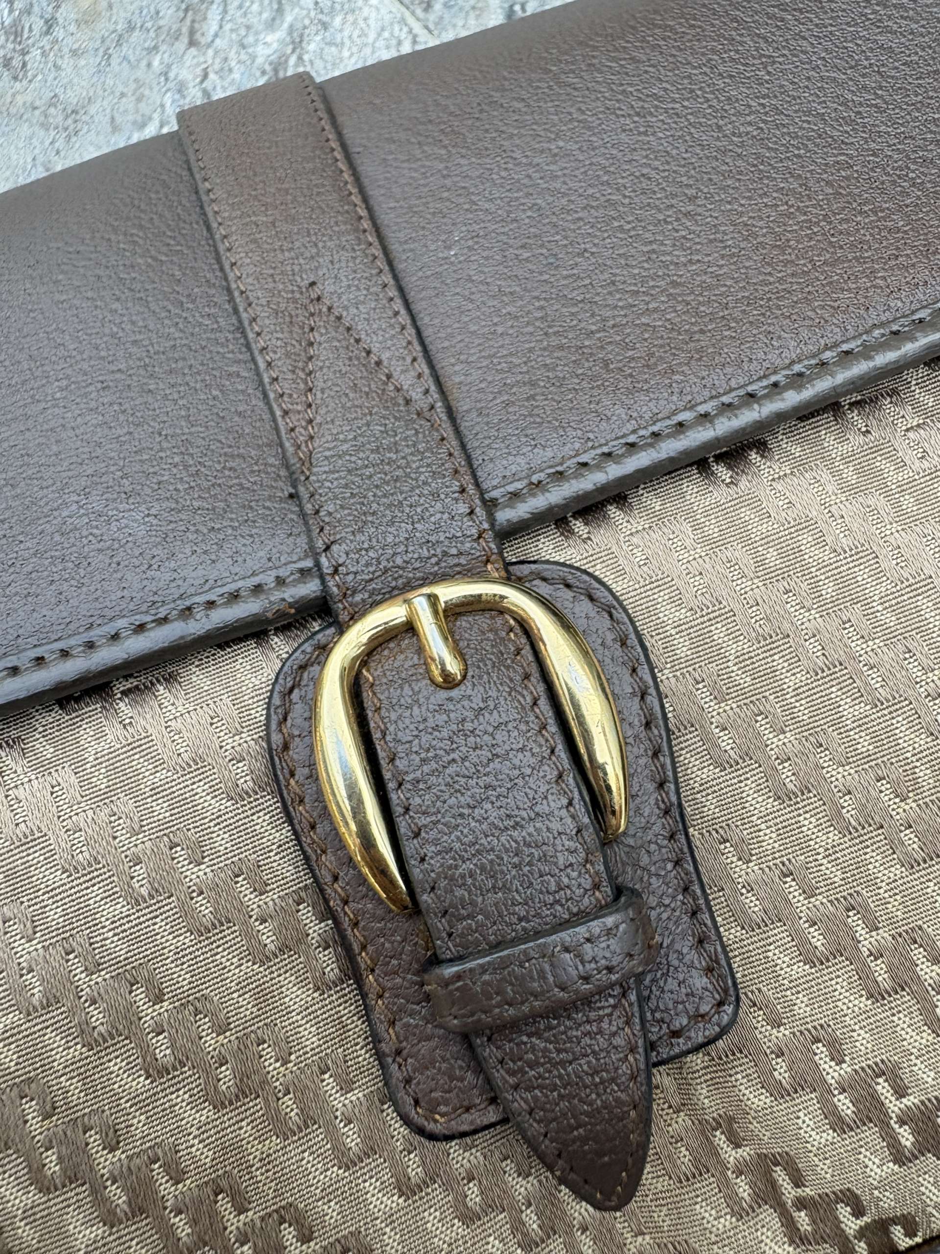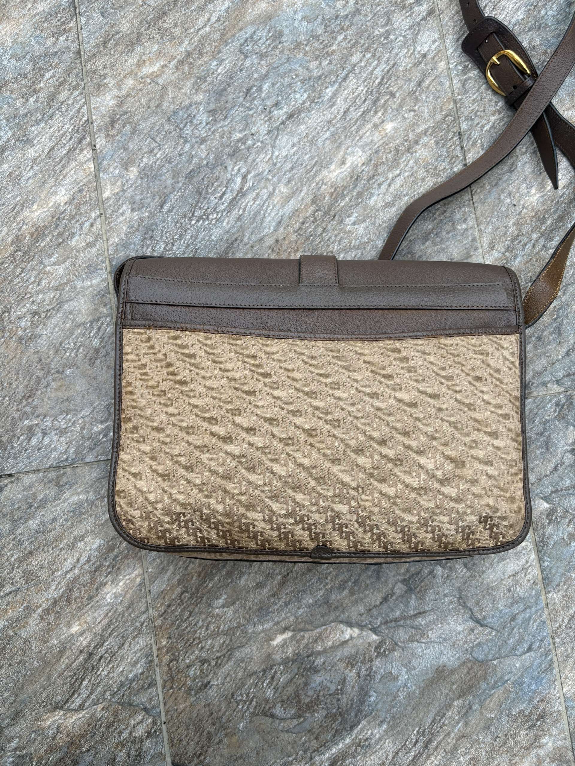 · Spacious interior. Leather has been partially recolored, but both the leather and metal are original—no replacements. Adjustable shoulder strap. Unisex.