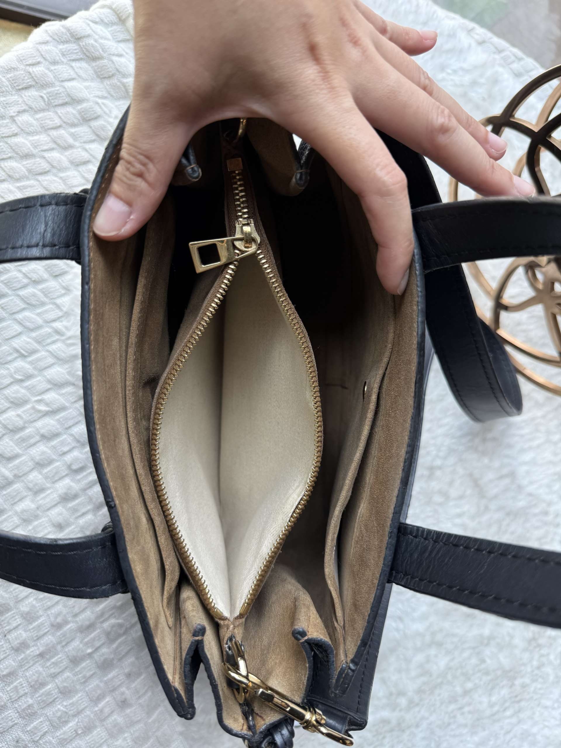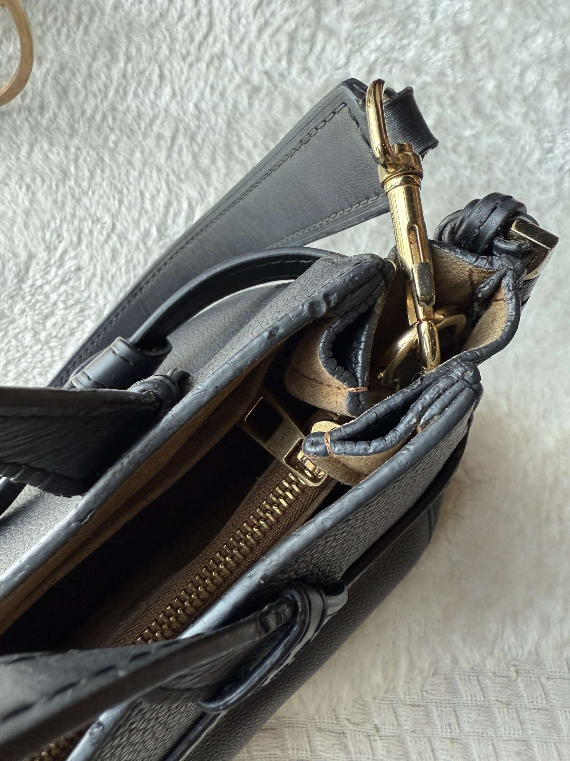 – Overall in decent condition, but the edge coating shows some melting. Can be professionally restored. Can be carried as a handbag or worn over the shoulder.