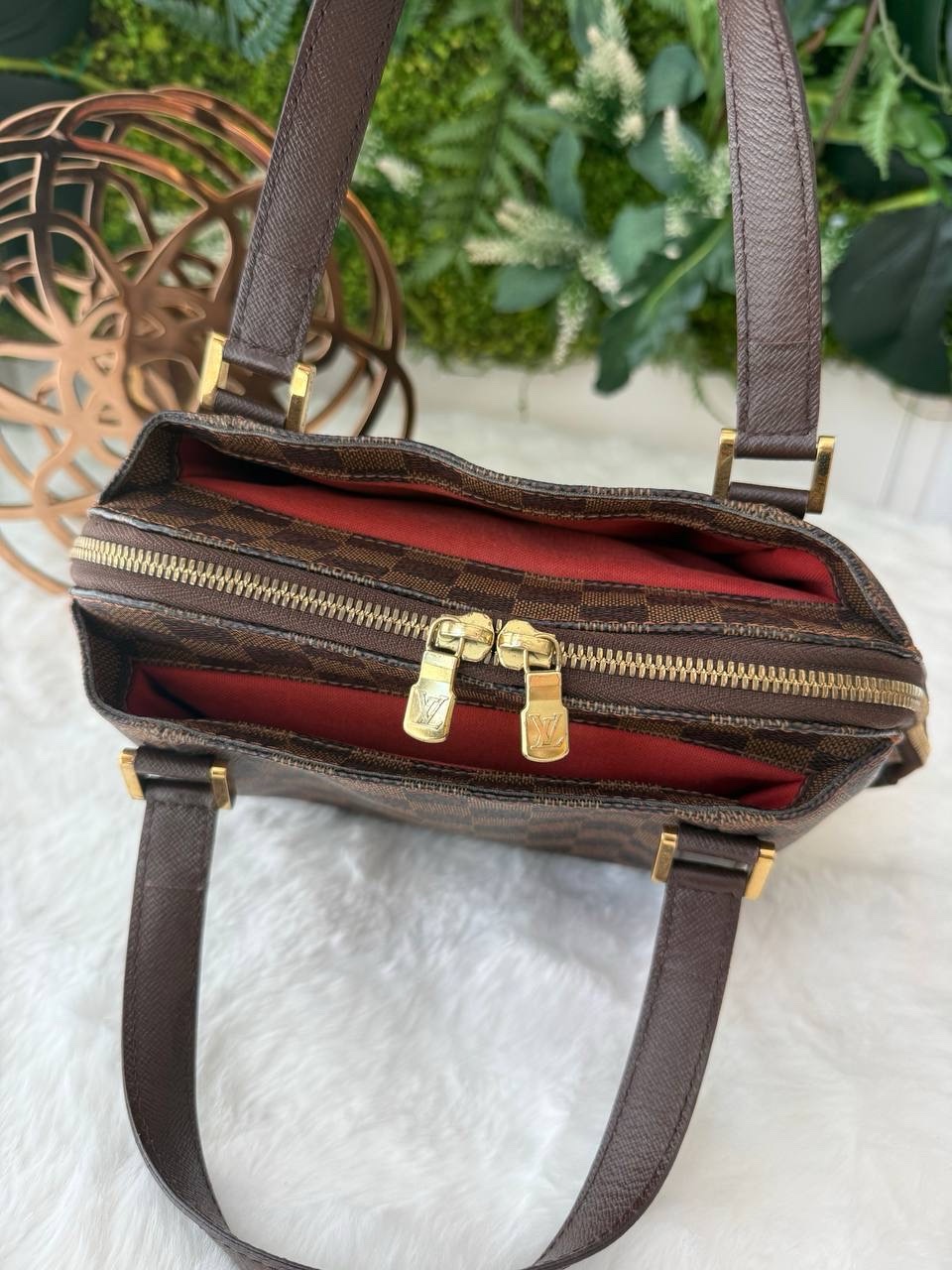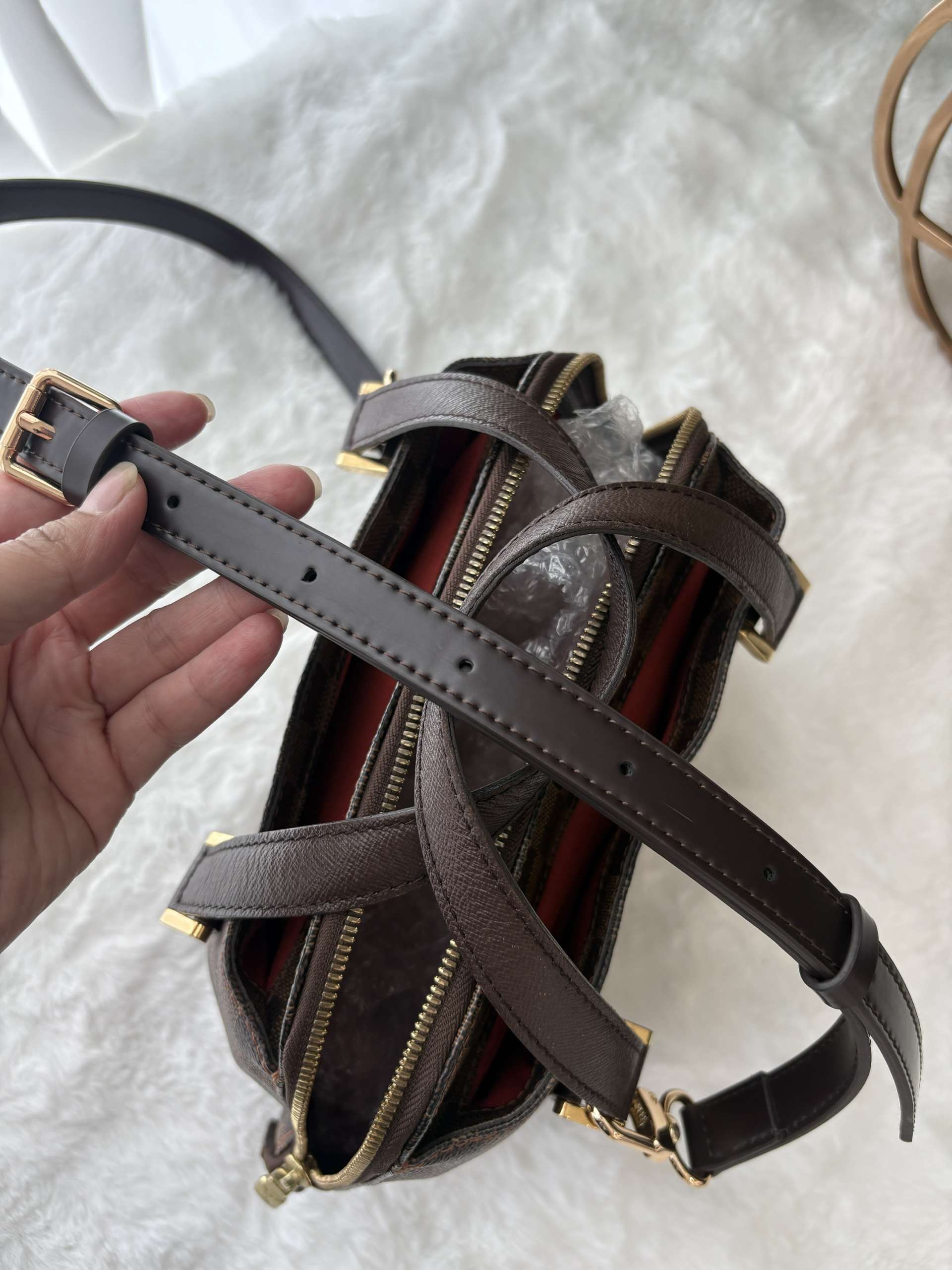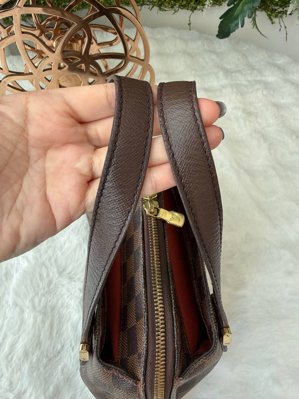 Little fortune pouch tote – The space in this bag is truly amazing! There are pockets at the front and back, and a large zippered compartment in the middle with plenty of room – even a long wallet fits inside. Comes with a fully adjustable leather shoulder strap – can be worn crossbody or on the shoulder. In a word, this bag is super practical! The Damier pattern is no longer being sold in boutiques now, so this is truly one to collect.