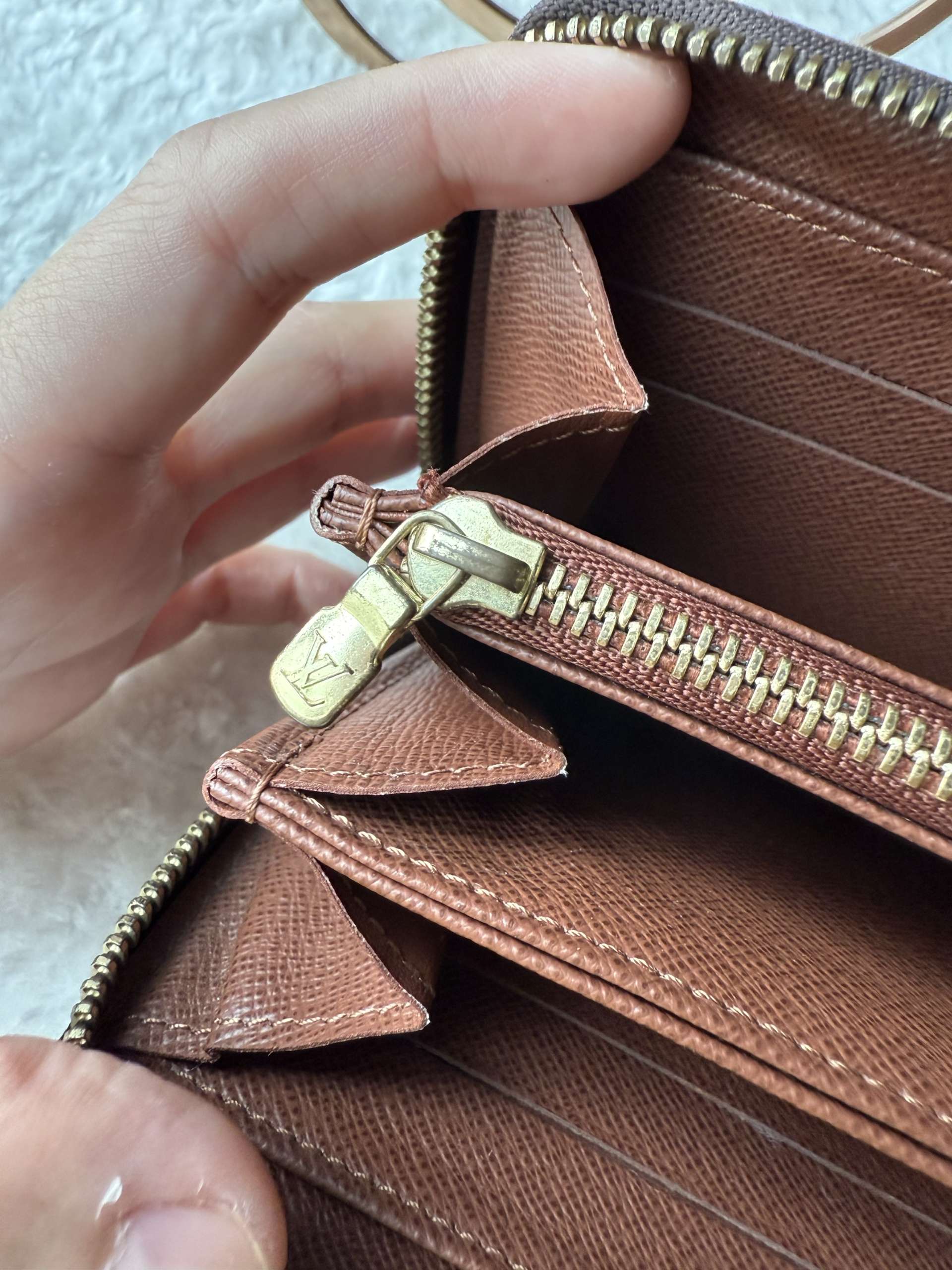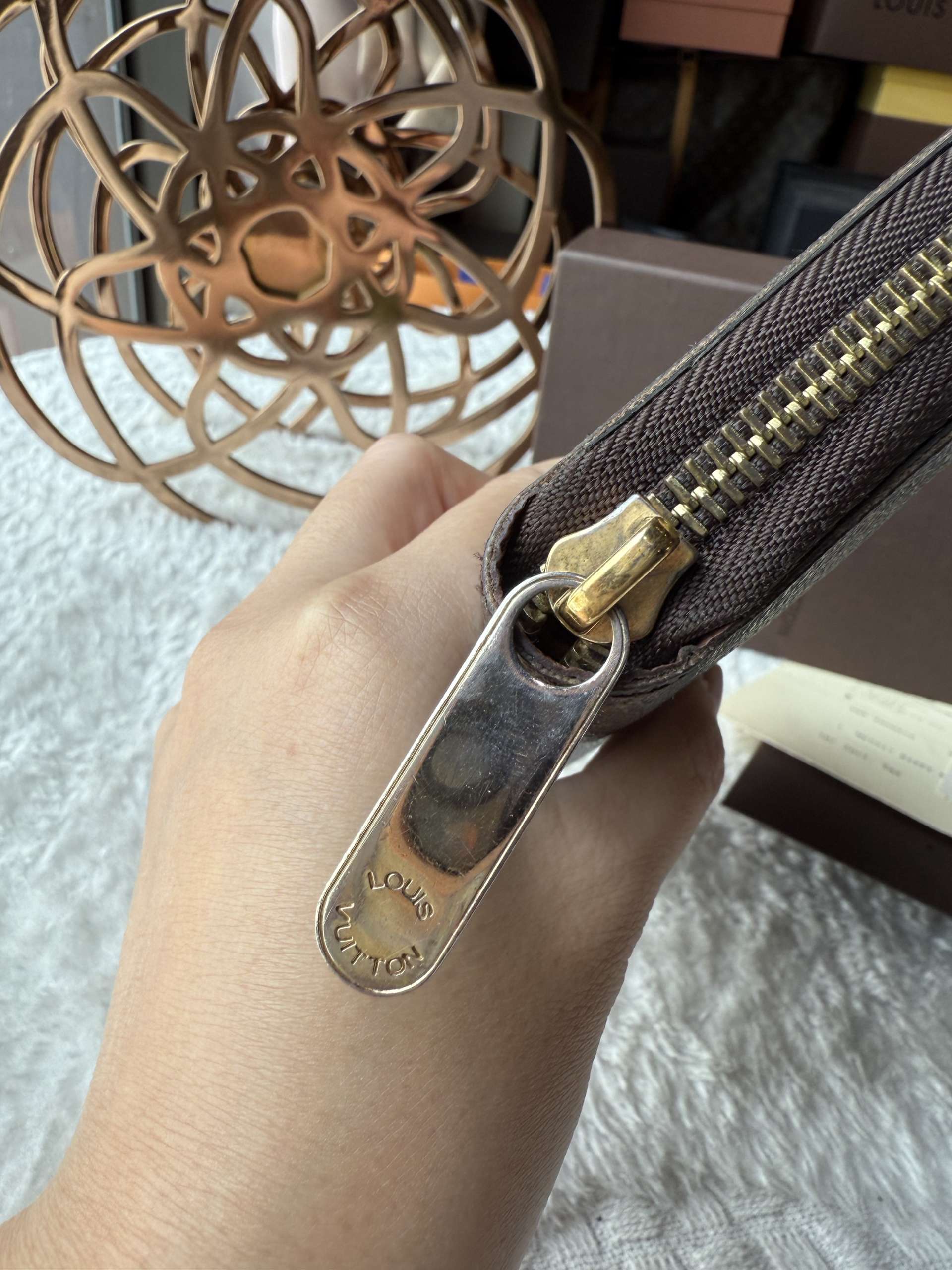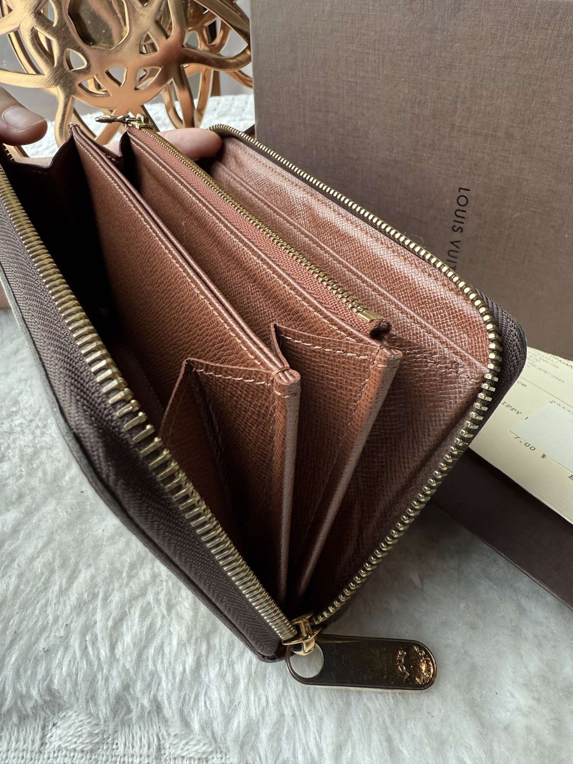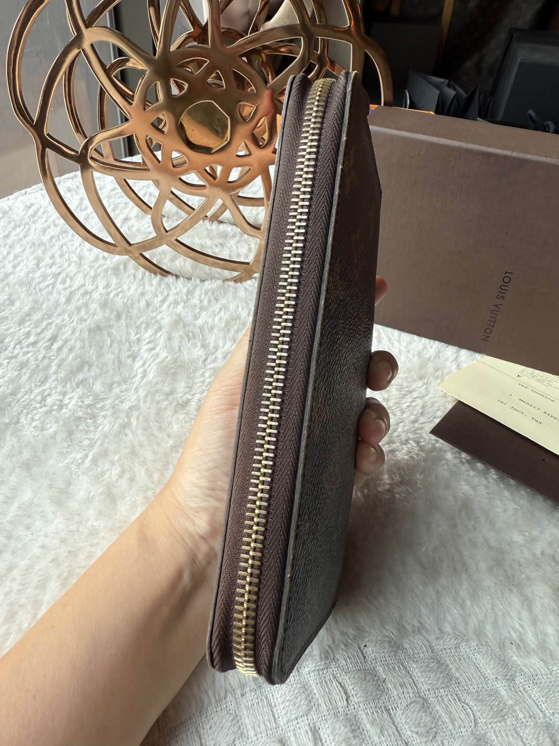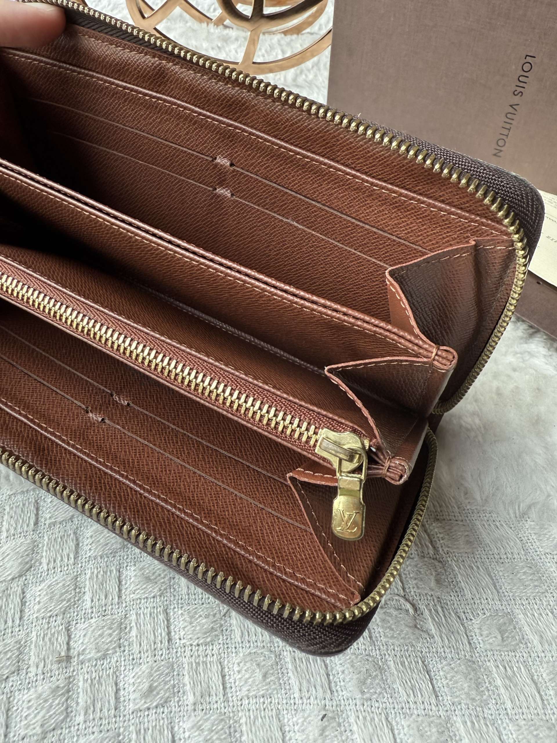 – Includes original box and dust bag. The wallet is in excellent condition, featuring a classic zippered design with ample space for cards, cash, and even a phone. Retail price: **RM 3,750**.
