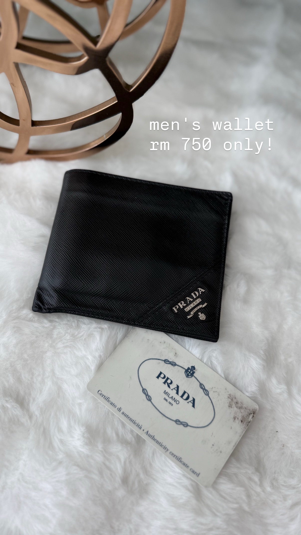 HomeSmall Leather & Accessoriesp rada wallet p rada walletRM199.00 p rada wallet quantity Buy now Order Via WhatsApp Category: Small Leather & Accessories Tag: New Arrivals Brand: PradaProduct ID: 24976 Description Reviews (0) Description Prada Men’s Wallet · Pre-owned, but no cracks or breaks. Fully functional. RM750 Reviews There are no reviews yet. Be the first to review “p rada wallet” Cancel replyYour email address will not be published. Required fields are marked *Name * Email * Save my name, email, and website in this browser for the next time I comment. Your rating * Rate… Perfect Good Average Not that bad Very poor Your review * By using this form you agree with the storage and handling of your data by this website. * Related products Celine card holder RM1,250.00 Order on WhatsApp Chanel short wallet RM3,750.00 Order on WhatsApp lv bracelet RM699.00 Order on WhatsApp